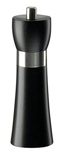 Why choose a pepper mill from Zassenhaus? The original Zassenhaus grinding mechanism, made from German high-tech ceramics, offers several advantages thanks to its patented construction: harder than steel, non-wearing and non-corroding 6 different adjustment from powder fine to coarse grinding the coarseness setting is maintained even after refilling 25year manufacturers warranty on the mechanism To use the mill, just turn the top part clockwise. Coarseness can be adjusted using the crossbar on the bottom of the mill. It can be easily filled by removing the top. The mill is made from beechwood with a black finish. It is 18cm/7in high with a diameter of 5.8cm/2.3in. Read more details..